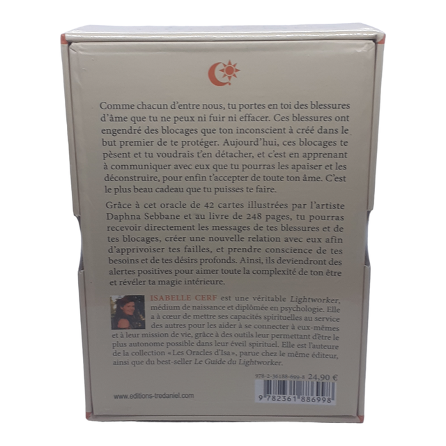 Grâce à cet oracle de 42 cartes illustrées par l'artiste daphna sebbane et au livre de 248 pages, tu pourras recevoir directement les messages de tes blessures et de tes blocages, créer une nouvelle relation avec eux afin d'apprivoiser tes failles, et de prendre conscience de tes besoins et de tes désirs profonds. Ainsi, ils deviendront des alertes positives pour aimer toute la complexité de ton être et révéler ta magie intérieure.
